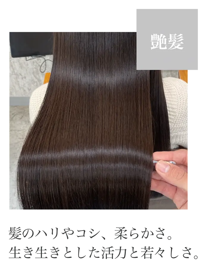 仕上がり後の髪の状態を一緒に確認し、これからのお手入れ方法やお家で良い状態を保つためのアドバイスをさせていただきます。あなた専用の髪質改善ケアで綺麗な髪を持続させます。